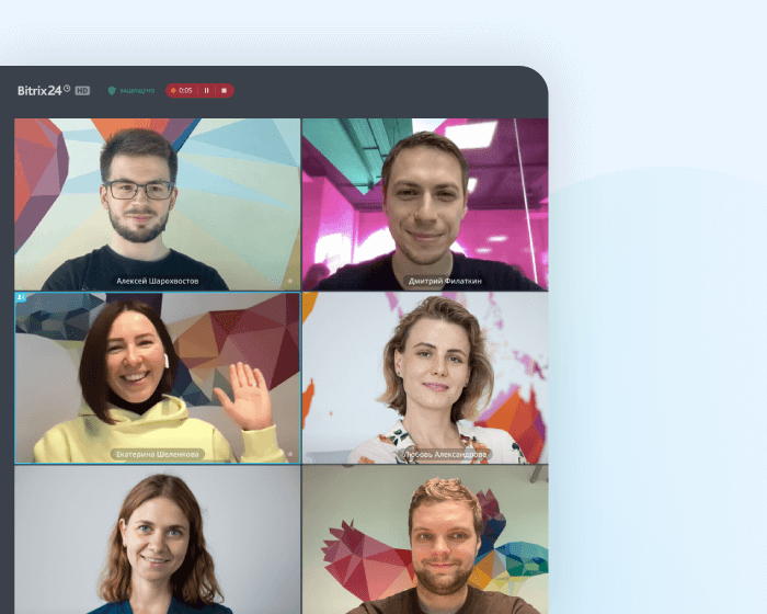 Коллеги, клиенты и подрядчики на связи — с высоким качеством видео и аудио, стабильным соединением и поддержкой групповых звонков до 48 человек. Звонок легко начать прямо из задачи, события в календаре или поста в Новостях компании.