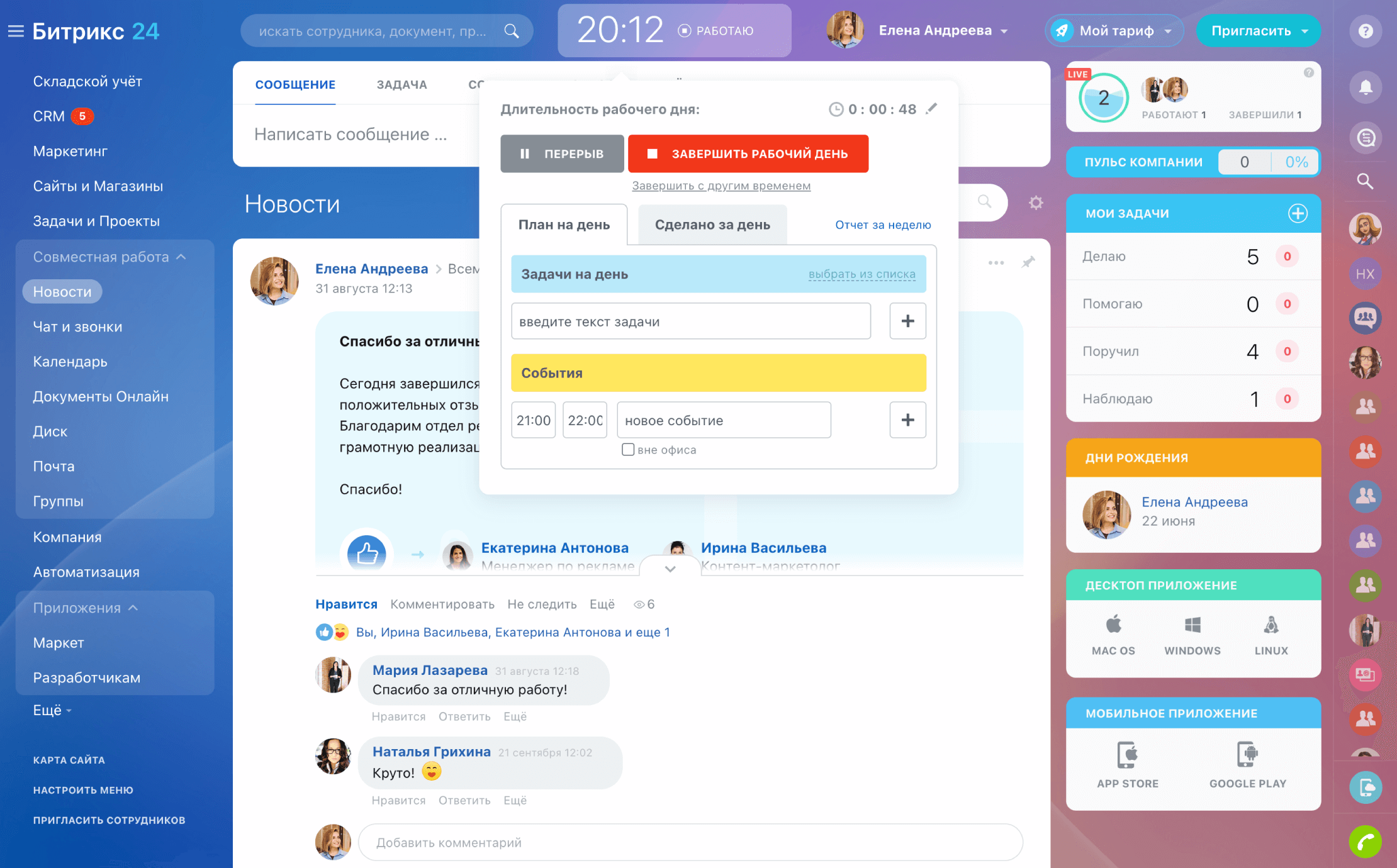 Битрикс24 – больше, чем CRM-система. Это полный набор инструментов для организации работы всей компании.