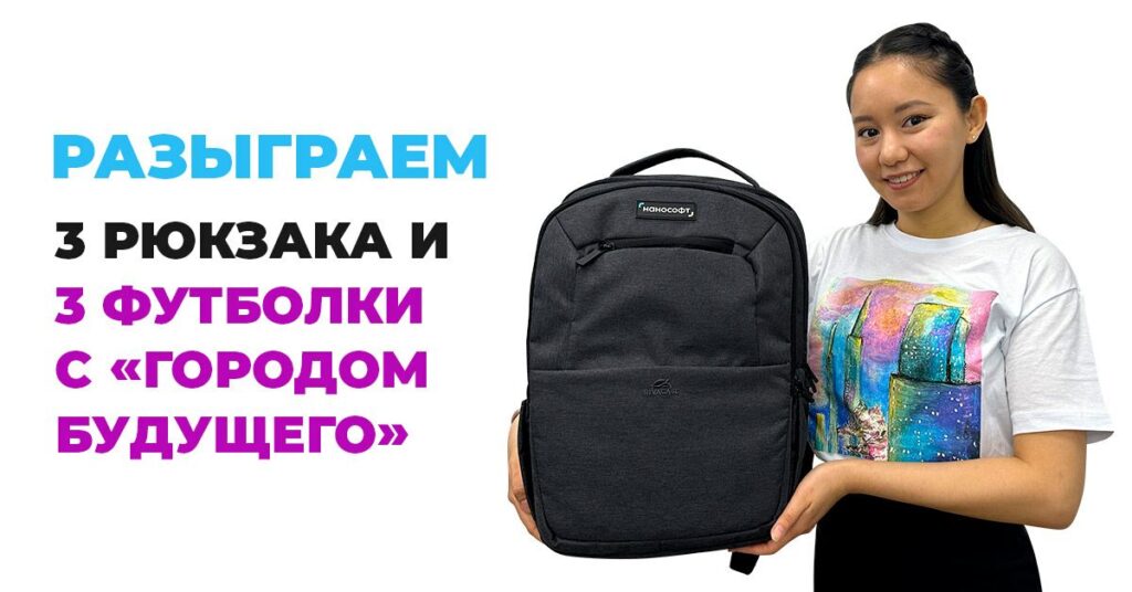 Во время трансляции разыграем три фирменных рюкзака и три футболки с «Городом будущего» от компании «Нанософт разработка».