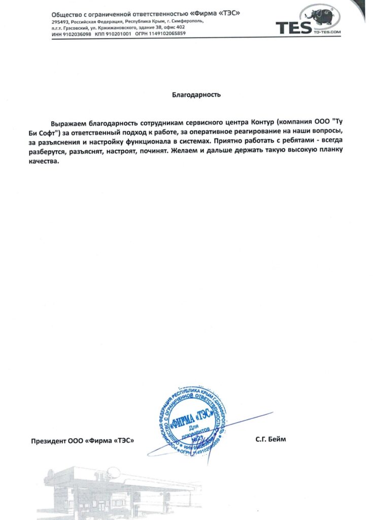 Сотрудничаем с компанией Ту Би Софт с 2015 года. Хотим выразить благодарность за качество обслуживания в компании.