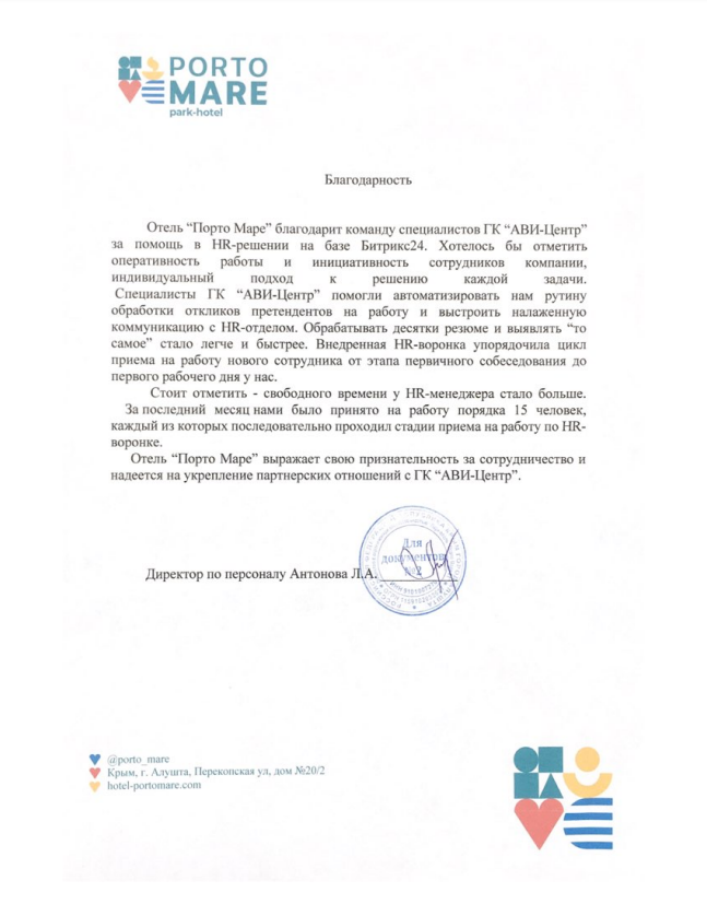 За последний месяц отель Porto Mare принял на работу более 15 человек, каждый из которых последовательно проходил все стадии приема на работу по нашей новой HR-воронке.